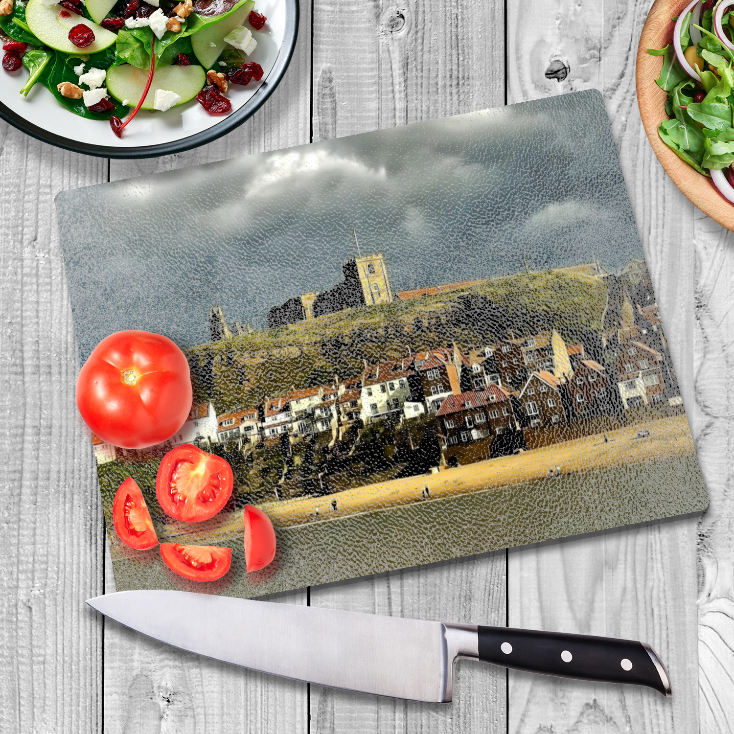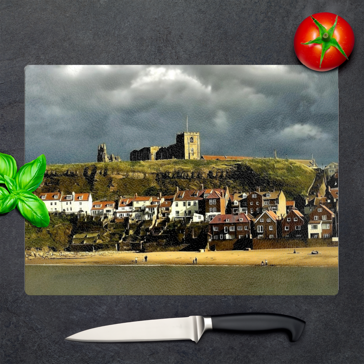 Picturesque Moments Presents: The Stylish Textured Glass Chopping Board. Whitby. North Yorkshire. England.