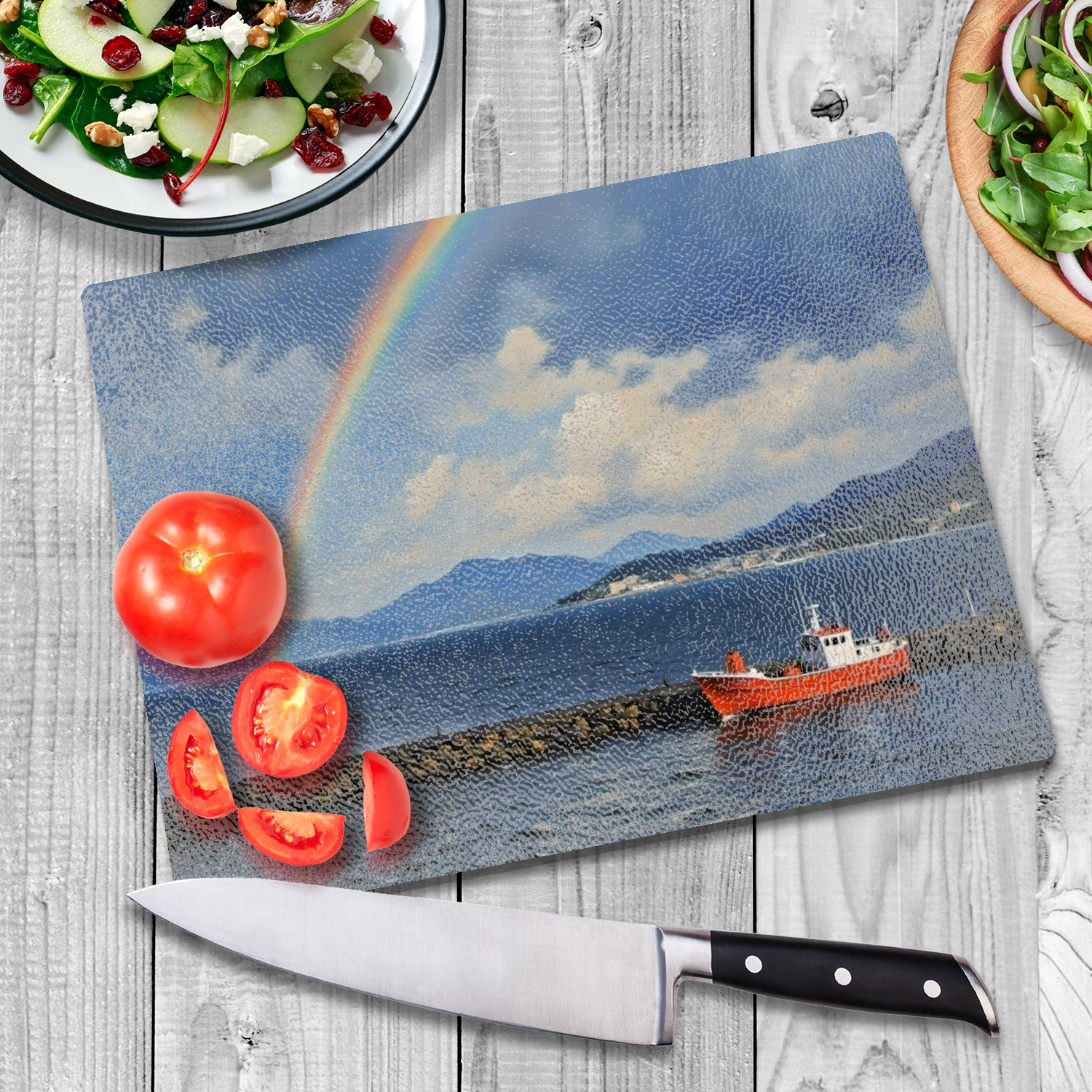 Transform your kitchen workspace with a touch of elegance and colour with our premium textured glass chopping boards.
